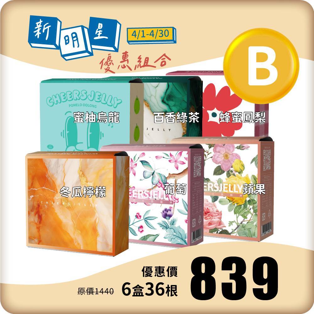 【新明星優惠組合B】舉杯低卡蒟蒻凍(6盒共36根入)冬瓜檸檬 葡萄 蘋果 蜜柚烏龍 蜂蜜鳳梨 百香綠茶