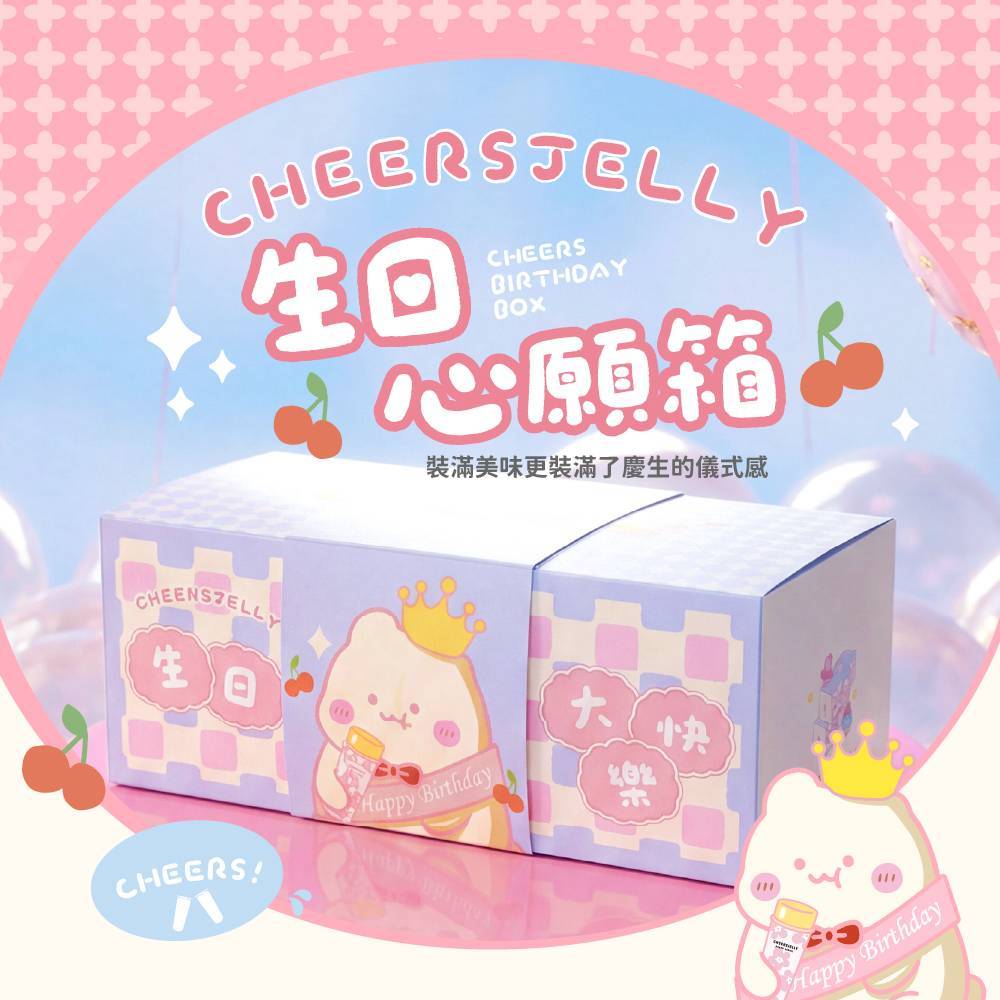 ★限量新品★舉杯低卡蒟蒻凍【CHEERS 生日心願箱】(4盒共24根入) 蘋果 芭樂柳橙 水蜜桃 梅子綠茶+贈「盛裝夢想盤、緞帶壽星背帶、壽星皇冠」*1組(顏色隨機)