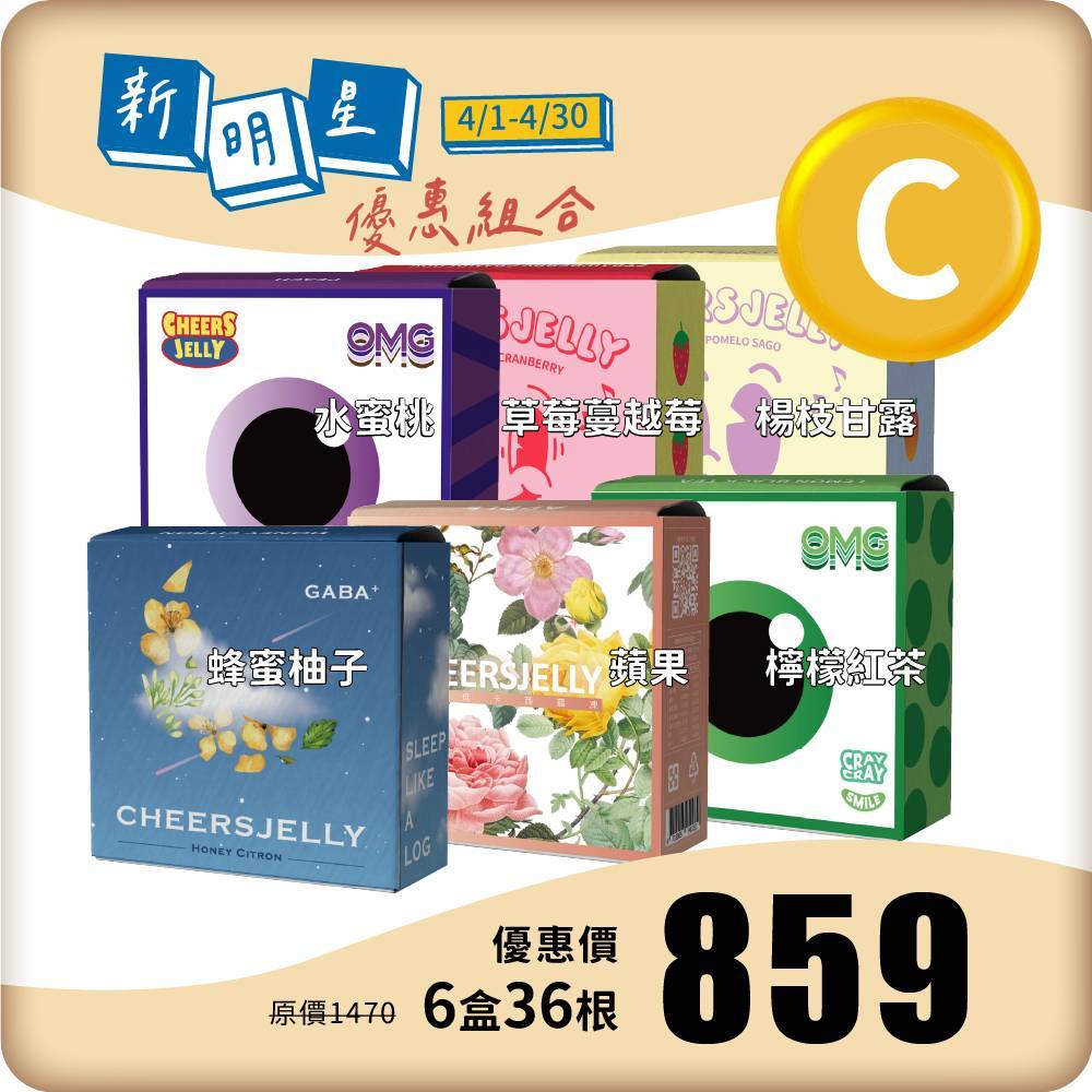 【新明星優惠組合C】舉杯低卡蒟蒻凍(6盒共36根入)蜂蜜柚子 蘋果 水蜜桃 草莓蔓越莓 楊枝甘露 檸檬紅茶