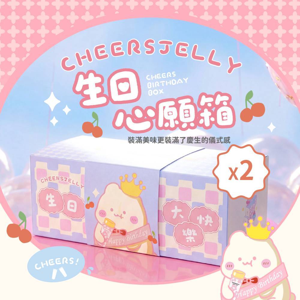 ★限量新品★舉杯低卡蒟蒻凍【CHEERS 生日心願箱】*2箱(8盒共48根入)蘋果*2芭樂柳橙*2水蜜桃*2梅子綠茶*2+贈「盛裝夢想盤、緞帶壽星背帶、壽星皇冠」*2組(顏色隨機)