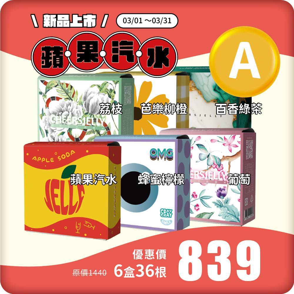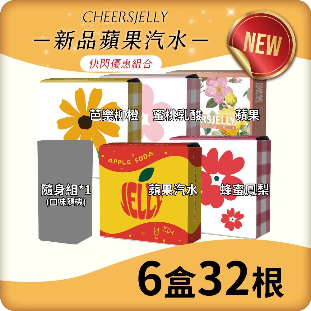 ★3月每日一物活動使用【快閃優惠組合】舉杯低卡蒟蒻凍(6盒共32根入)蘋果汽水、蜂蜜鳳梨、芭樂柳橙、蜜桃乳酸、蘋果 +隨身組1盒(口味隨機)
