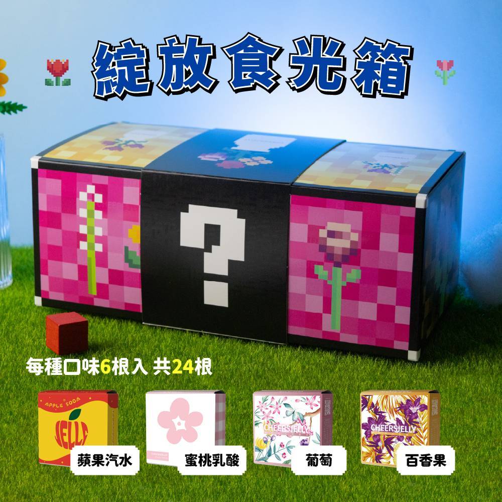 ★3月每日一物活動使用\3月新品⛧ 搶先曝光看/舉杯低卡蒟蒻凍【CHEERSJELLY 綻放食光箱】(4盒共24根入) 葡萄 百香果 蜜桃乳酸 蘋果汽水+贈居家永生花造型擺飾 (款式隨機出貨)