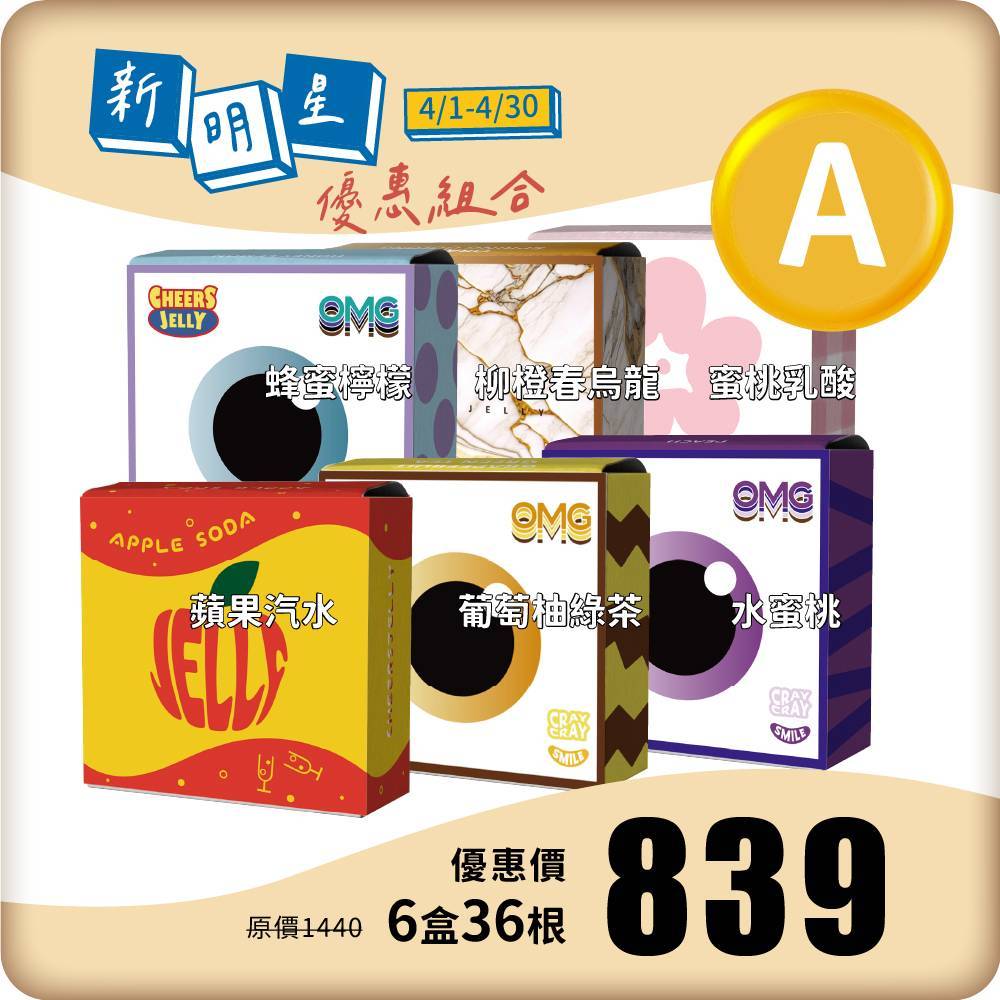 【新明星優惠組合A】舉杯低卡蒟蒻凍(6盒共36根入)蘋果汽水 水蜜桃 蜂蜜檸檬 柳橙春烏龍 蜜桃乳酸 葡萄柚綠茶
