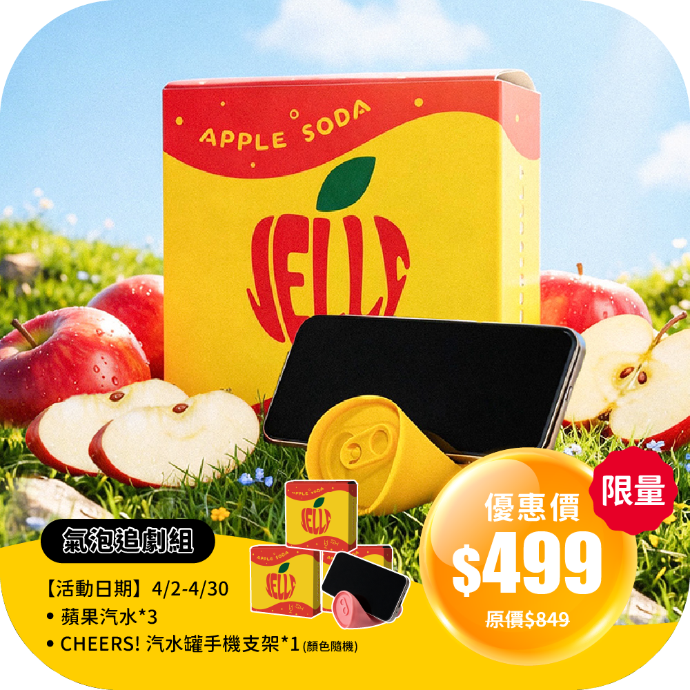 限量【氣泡追劇組】舉杯低卡蘋果汽水蒟蒻凍(3盒共18根入)+CHEERS! 汽水罐手機支架*1(顏色隨機)