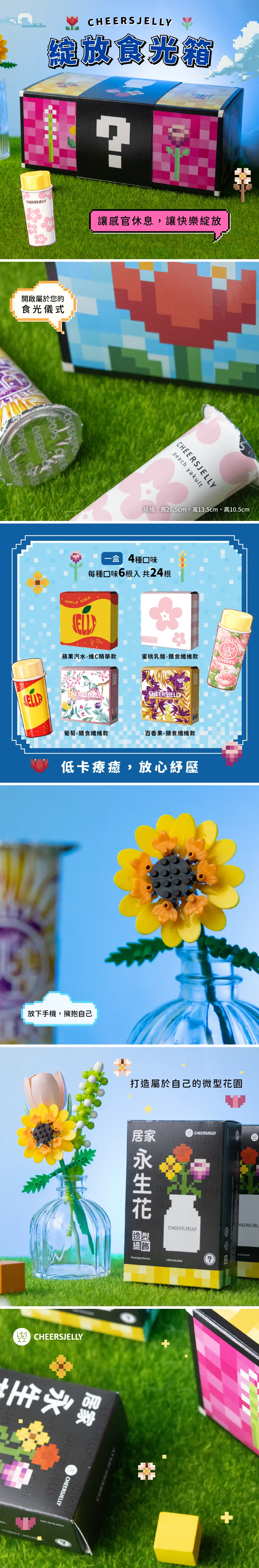 ▲每購買1組CHEERSJELLY 綻放食光箱,即贈居家永生花造型擺飾1個,數量有限,售完為止。
