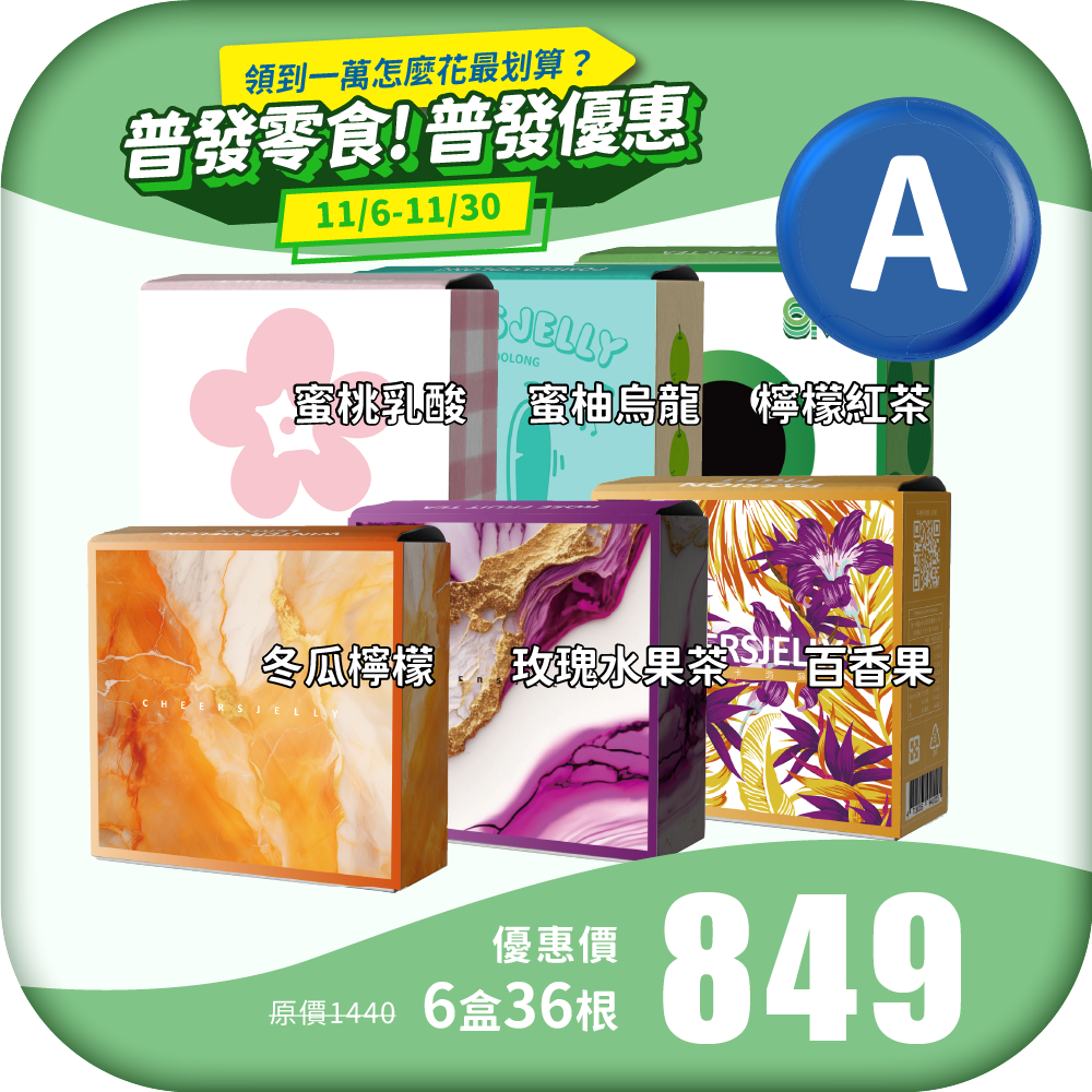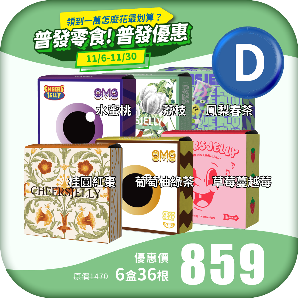 CHEERSJELLY 【普發零食! D】舉杯低卡蒟蒻凍(6盒共36根)桂圓紅棗 葡萄柚綠茶 草莓蔓越莓 水蜜桃 荔枝鳳梨春茶