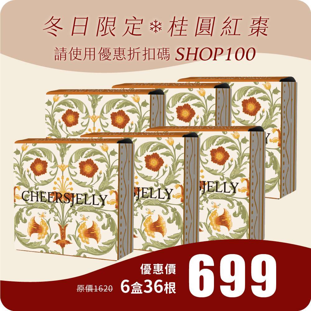CHEERSJELLY 冬季限定優惠組合-舉杯低卡桂圓紅棗蒟蒻凍396g(6盒共36根入)