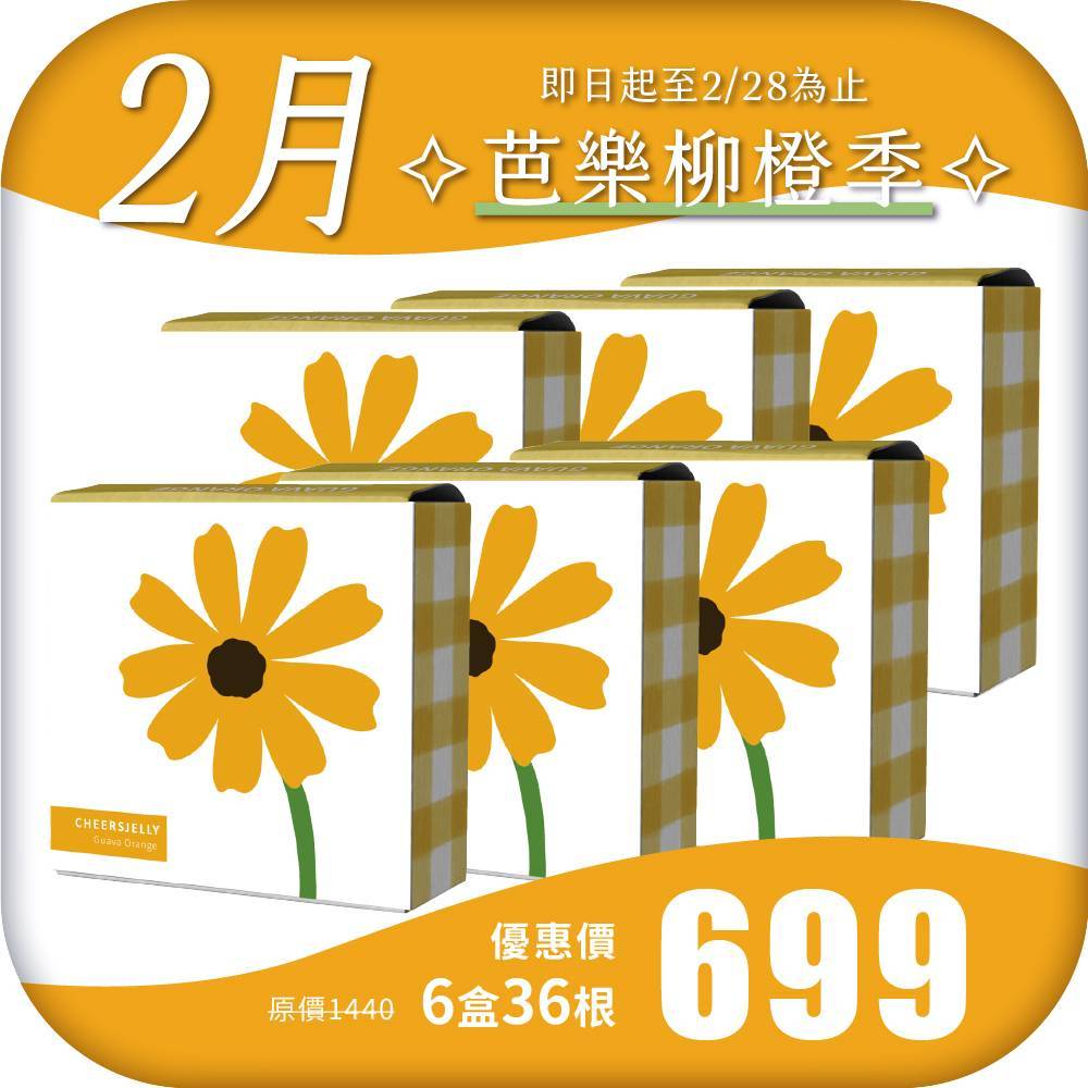 CHEERSJELLY 2月正當季水果組合優惠-舉杯低卡芭樂柳橙蒟蒻凍396g(6盒共36根入)