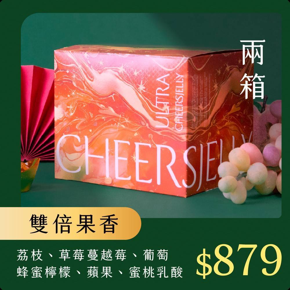 CHEERSJELLY 舉杯低卡蒟蒻凍《CHEERSJELLY 燦金福氣箱》雙倍果香(2箱共36根,附提袋)荔枝 草莓蔓越莓 葡萄 蜂蜜檸檬 蘋果 蜜桃乳酸